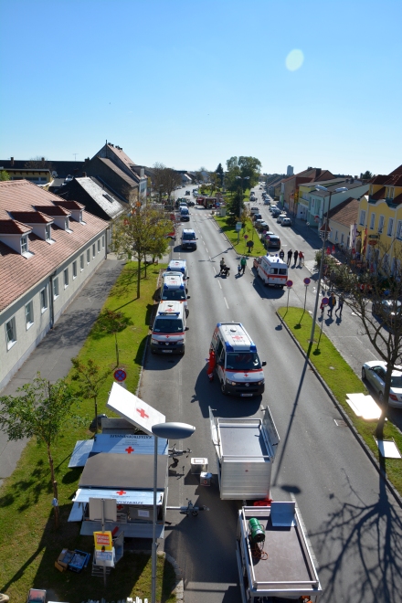 Am Sonntag, den 19. Oktober fand eine groß angelegte Katastrophen-Hilfs-Dienst Übung des Roten-Kreuzes im Krankenhaus Kittsee statt. Zusammengefasst wurde die Übung unter dem Namen “KittseeKAT 2014”. Eingeladen beziehungsweise hinzugezogen zu dieser Übung wurden neben der örtlich zuständigen Feuerwehr Kittsee, die Drehleiter der Feuerwehr Hainburg, der Hubsteiger aus Neusiedl am See und auch unsere Drehleiter.
