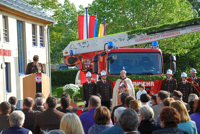 Herr Landeshauptmann, Herr Landesfeuerwehrkommandant, melde die Drehleiter Frauenkirchen einsatzbereit!Kommandant HBI Franz Lass