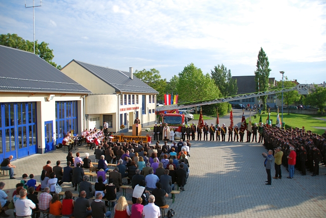 Am Samstag, den 29. Mai 2010 wurde unserer Drehleiter mit der Segnung durch unseren Pfarrer Bruder Elias offiziell durch den Kommadanten “einsatzbereit” gemeldet. Die Bauernkapelle Gols, in Vertretretung für unseren beim Wertungsspiel für Marschmusik in Moosbrunn weilenden Musikvereines, eröffnete um 17.30 Uhr den Festakt mit einem Platzkonzert vor dem Feuerwehrhaus wo wir die Drehleiter und die Bühne für den offiziellen Teil platziert hatten.