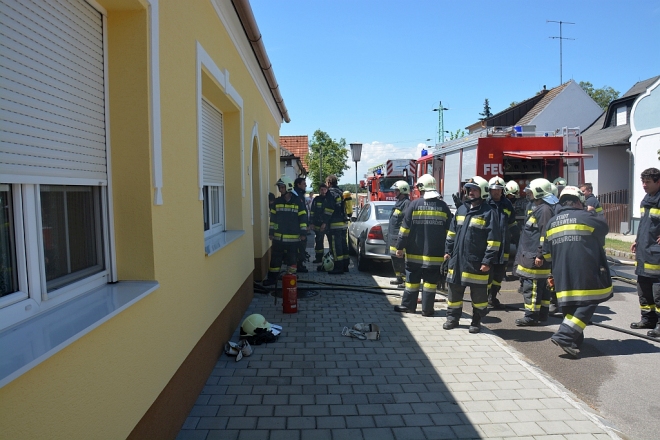 Am Sonntag, den 6. Juli 2014 wurde unsere Wehr kurz nach Mittag zu einem Brandeinsatz in die Feldgasse gerufen mittels Sirene, Pager und SMS gerufen. Beim Eintreffen des erstausrückenden Rüstlöschfahrzeuges waren starke Rauchentwicklung und Flammen im der Küche wahrzunehmen. Unter Atemschutz und mittels HD-Rohr wurde unter geringem Löschwassereinsatz der Brand rasch gelöscht. Die Besitzerin war zu diesem Zeitpunkt bereits aus dem Gefahrenbereich und wurde durch einen Polizeibeamten betreut, der sie auch zur Behandlung einer Handverletzung in die Unfallambulanz brachte. Mittels Druckbelüftung wurde danach das Gebäude rauchfrei gemacht. Ein Atemschutztrupp stand auch als Reserve in Bereitschaft.