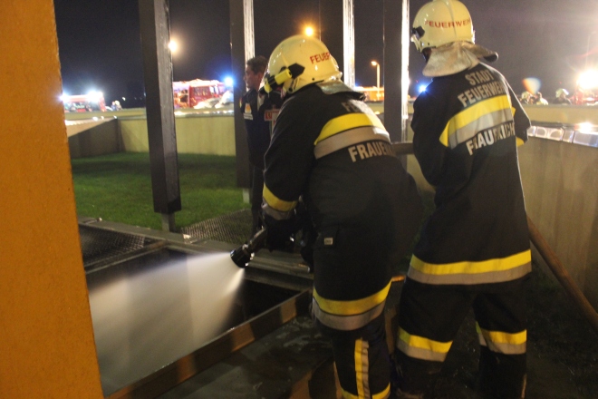 Eingesetzte Kräfte: RLF, LF-B, TLF, DLK und MTF Frauenkirchen mit 23 Mann