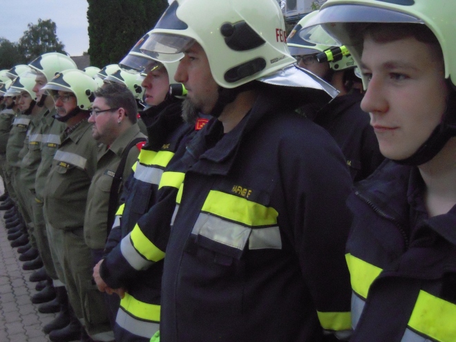 Kurze Zeit nach der Alarmierung rückten 19 Mann mit fünf Fahrzeugen in die Grenzgemeinde aus. In Pamhagen angekommen, gab uns ein Lotse der Feuerwehr Pamhagen die erste Einweisung wo sich unsere Fahrzeuge aufzustellen hatten. Drehleiter, Rüstlöschfahrzeug und Mannschaftstransportfahrzeug rückten direkt zum Einsatzort, rückseitig der Hauptstraße, aus. Das Löschfahrzeug und das Tanklöschfahrzeug blieben vorerst auf der Hauptstraße und besetzten den dortigen Hydranten.