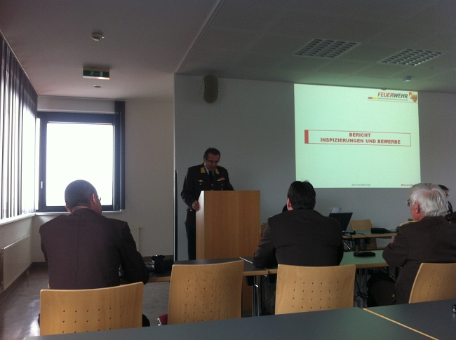 Vom Bezirksfeuerwehrkommandanten, seinem Stellvertreter und Bezirksfeuerwehrinspektor abwärts bis zu den einzelnen Fachreferenten (Funk, Atemschutz, Jugend und Verwaltung) wurden die wichtigsten Vorhaben und Neuigkeiten den anwesenden Offizieren präsentiert.