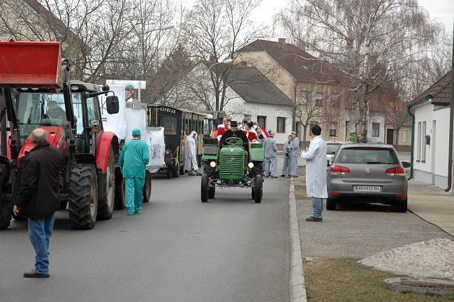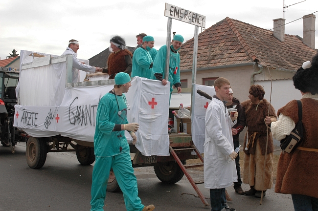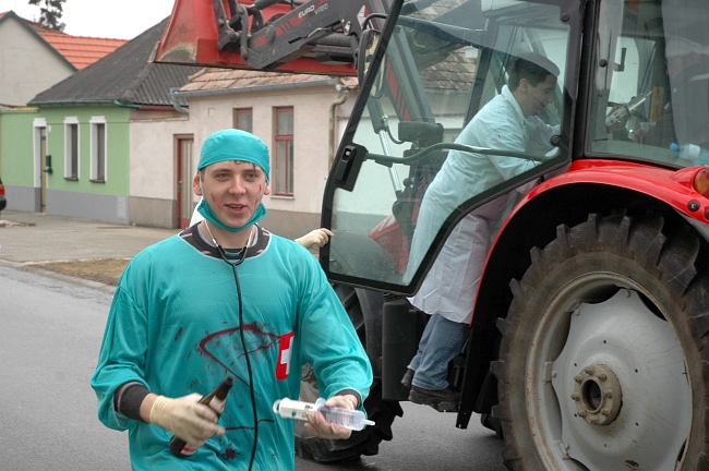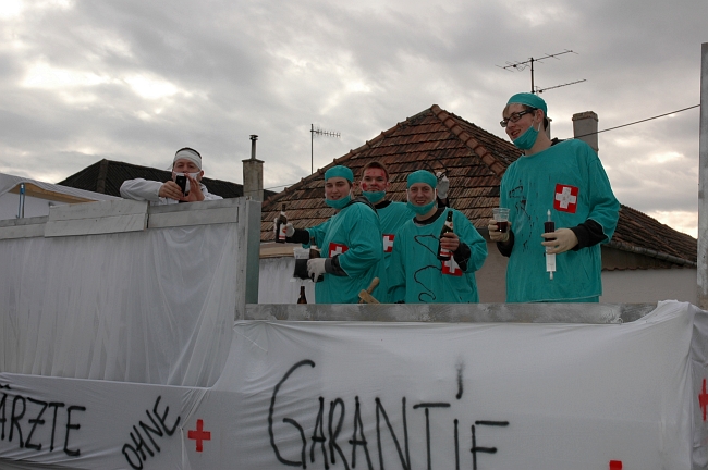 Frauenkirchen – Samstag, 18. Februar 2012: Einige Kameraden ließen es sich auch heuer nicht nehmen am Faschingsumzug beim “FrauFaGau” mitzumachen. Unter dem Titel “Ärzte ohne Garantie” wurde am Umzug ordentlich “Gas” gegeben und die vielen Patient_Innen wurden auf unserem Wagen mit den richtigen “Mittelchen” versorgt um weiterfeiern zu können.